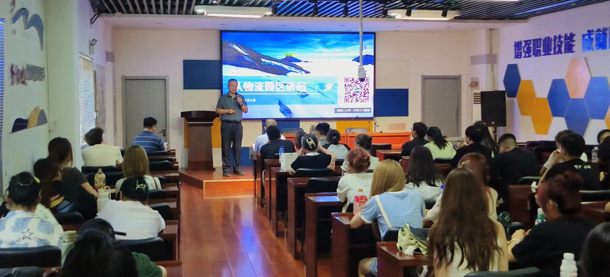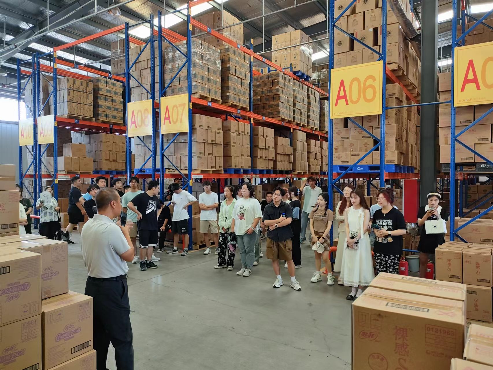活动第三阶段,山西穗华供应链有限公司副总经理刘艳,在仓储现场,对物流设施、搬运设备、物流信息系统展开详细讲解与实操示范。在实践环节中,同学们亲身参与了货物搬运以及在运输时产品摆放位置等基本物流操作,进一步加深了对物流工作的认识。