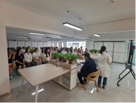 师生们先来到了公司的创新研究院,由董事长助理郭旭超带领参观了公司创新展区,他详细讲解了公司的发展历程、企业文化、科研成果以及未来发展规划。随后科研部部长董志帅及其同事分别介绍了公司主要科研成果以及员工们的工作生活日常。之后,郭总带领师生们参观了创新实验室。