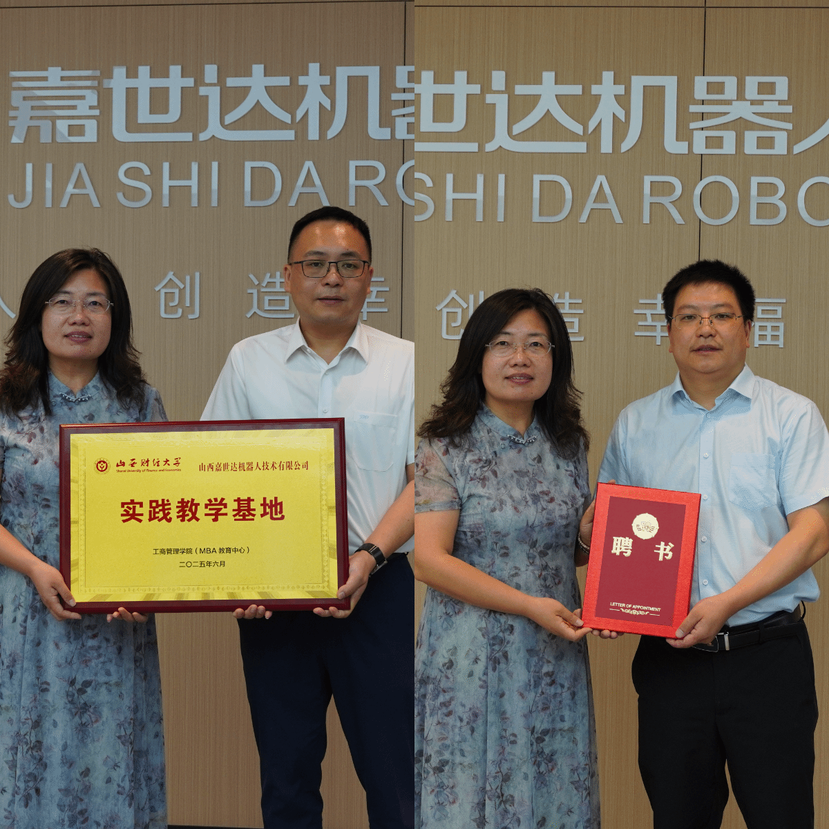 活动尾声,薛继东向嘉世达授予“实践教学基地”牌匾,并为蒲勇颁发“校外实践导师”聘书。薛继东表示,嘉世达的创业历程是山西资源型经济转型的生动缩影,其创新精神与管理经验将为学院教学提供鲜活案例。同学们也纷纷表示,此次实践不仅拓宽了专业视野,更激发了他们对科技赋能传统产业、数字经济与实体经济融合的思考。