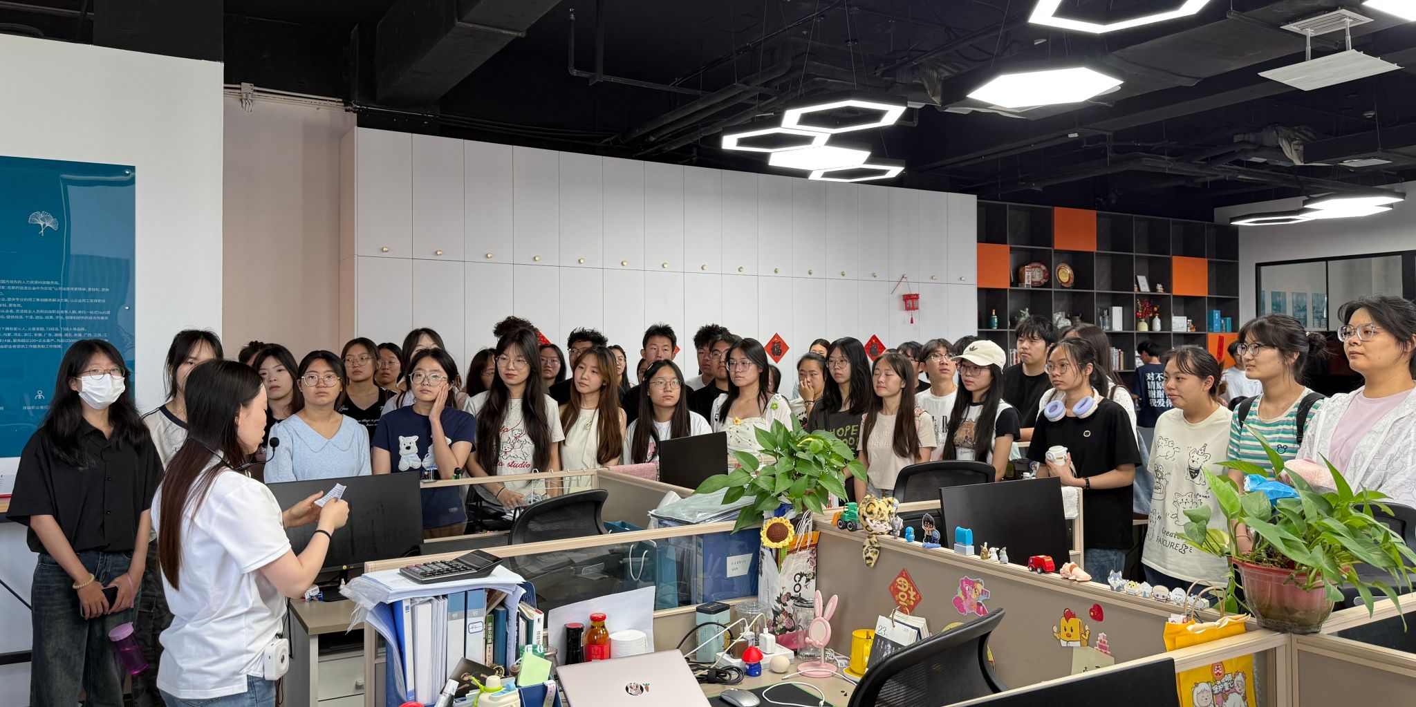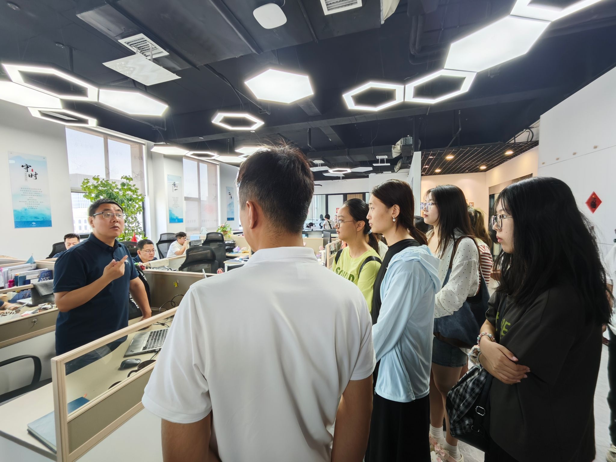 刘强带领师生们分组参观了公司的办公场所,公司有关各部门负责人分别讲解了部门职能、人员分工与工作职责,以及公司的发展历程、企业文化、运作模式和公司产品。