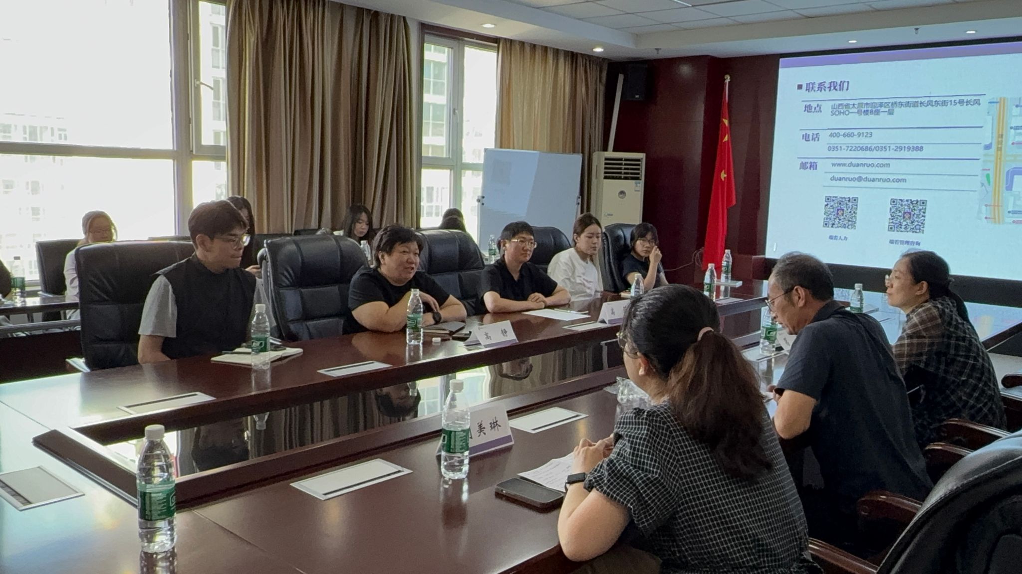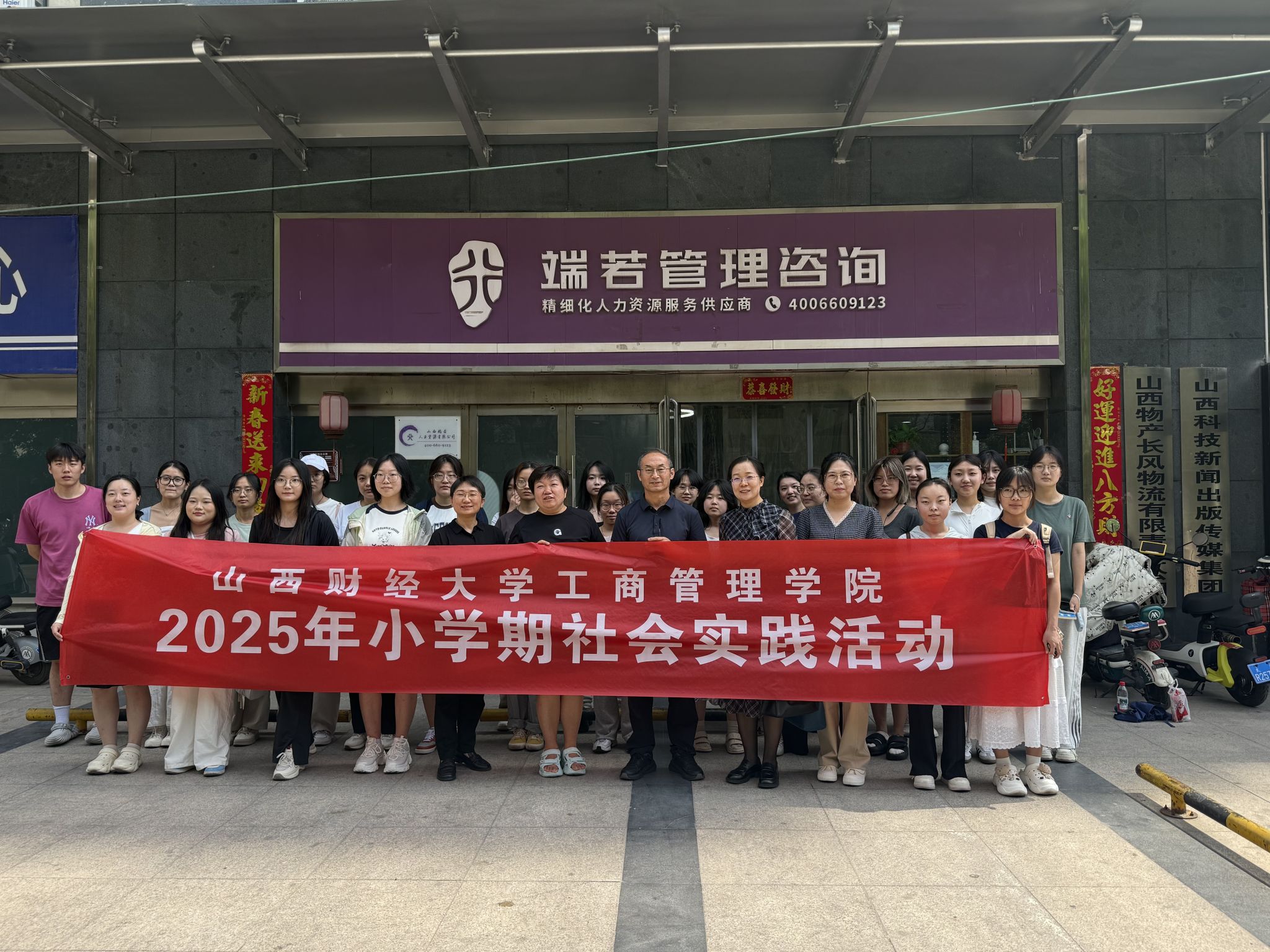 6月24日下午,我院人力资源管理专业师生在院党委副书记周志刚带领下,赴山西端若人力资源有限公司开展“小学期”社会实践活动。端若人力资源有限公司董事长高静、总经理高菲、市场调研部部长严子恒热情接待了我院一行。