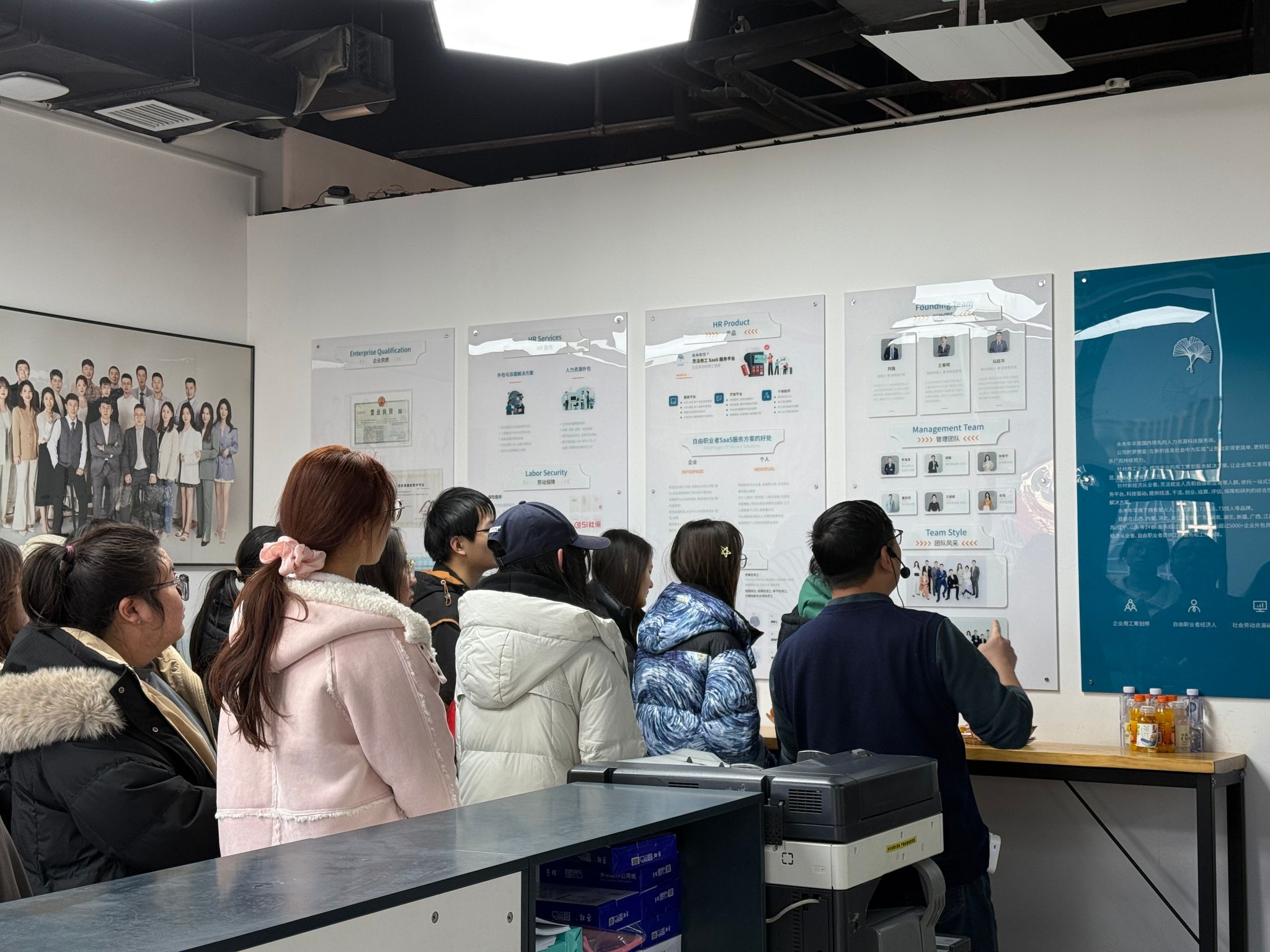 活动开始,师生们参观了公司的办公场所,各部门负责人分别介绍部门职能、人员分工及工作职能,让在场师生整体了解企业内部运营管理情况。