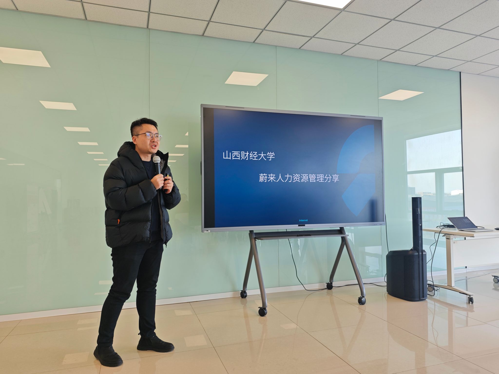 1月14日下午,我院人力资源管理专业20余名师生在张征教授的带领下,走进太原蔚来汽车销售服务有限公司开展“小学期”社会实践活动。